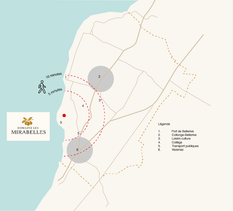 Une localisation d’exception, entre lac et ville Idéalement situé sur les rives du lac, le Domaine Les Mirabelles bénéficie d’un emplacement rare, alliant sérénité et proximité immédiate avec la ville.