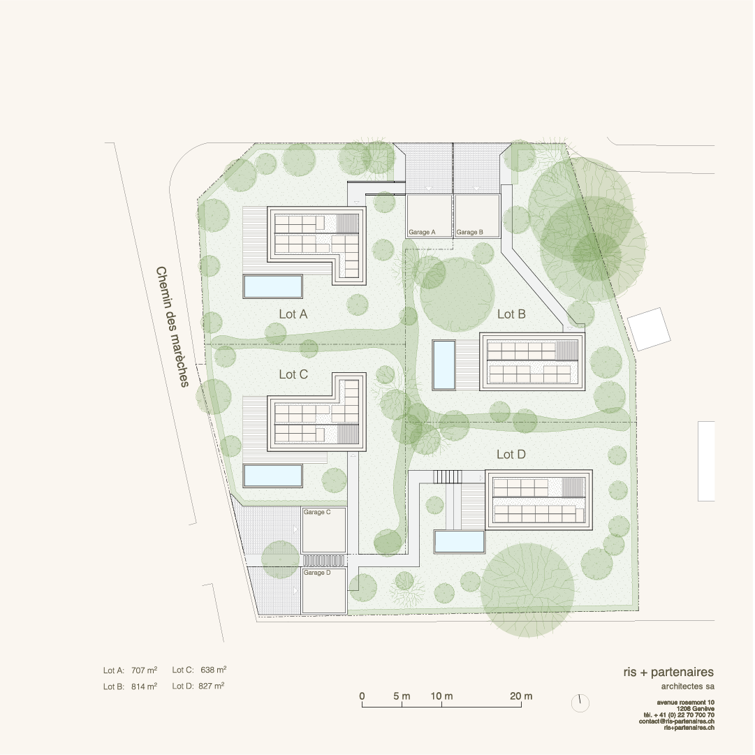 Les quatre villas sont disposées de manière à optimiser l’orientation et les vues, tout en minimisant les vis-à-vis.