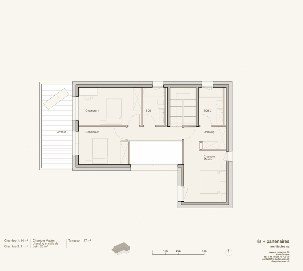 - Façades en grès cérame, finition contemporaine.