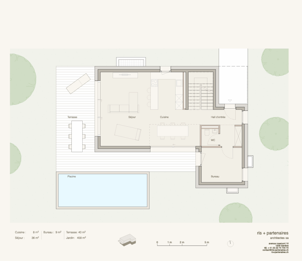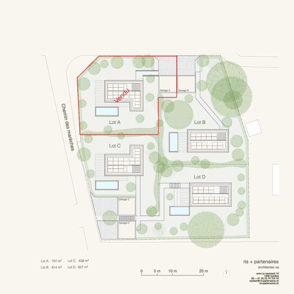 - Villas construites sur 3 niveaux (sous-sol, rez-de-chaussée, étage).