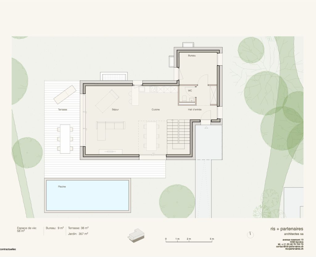 - Villas construites sur 3 niveaux (sous-sol, rez-de-chaussée, étage).